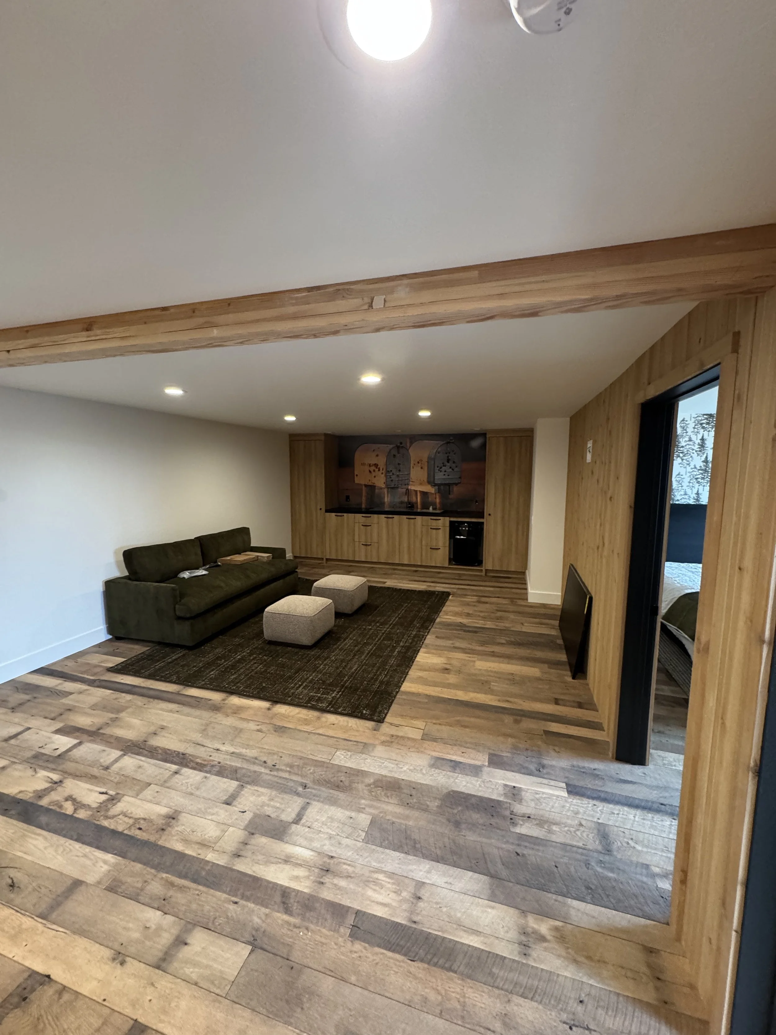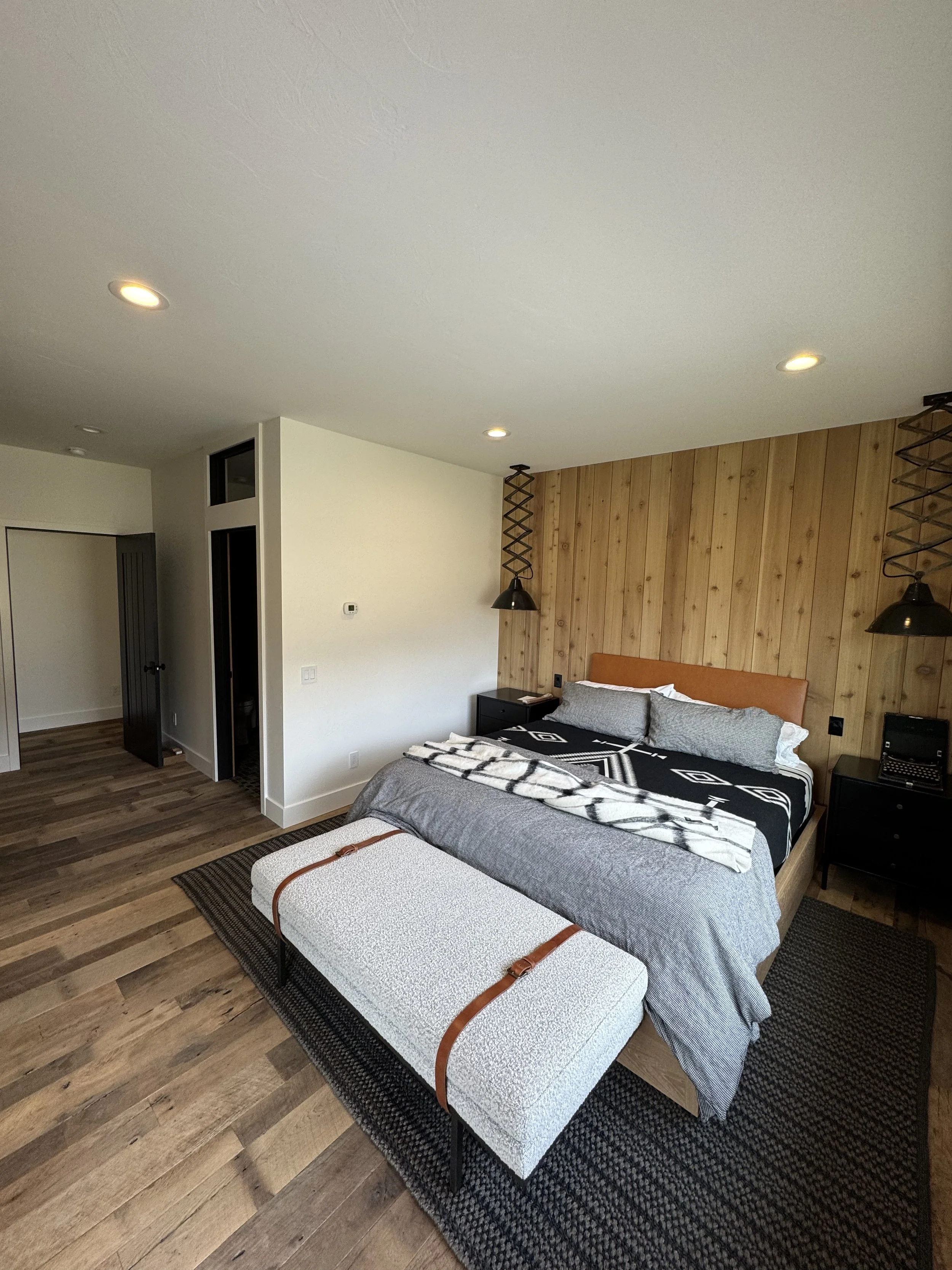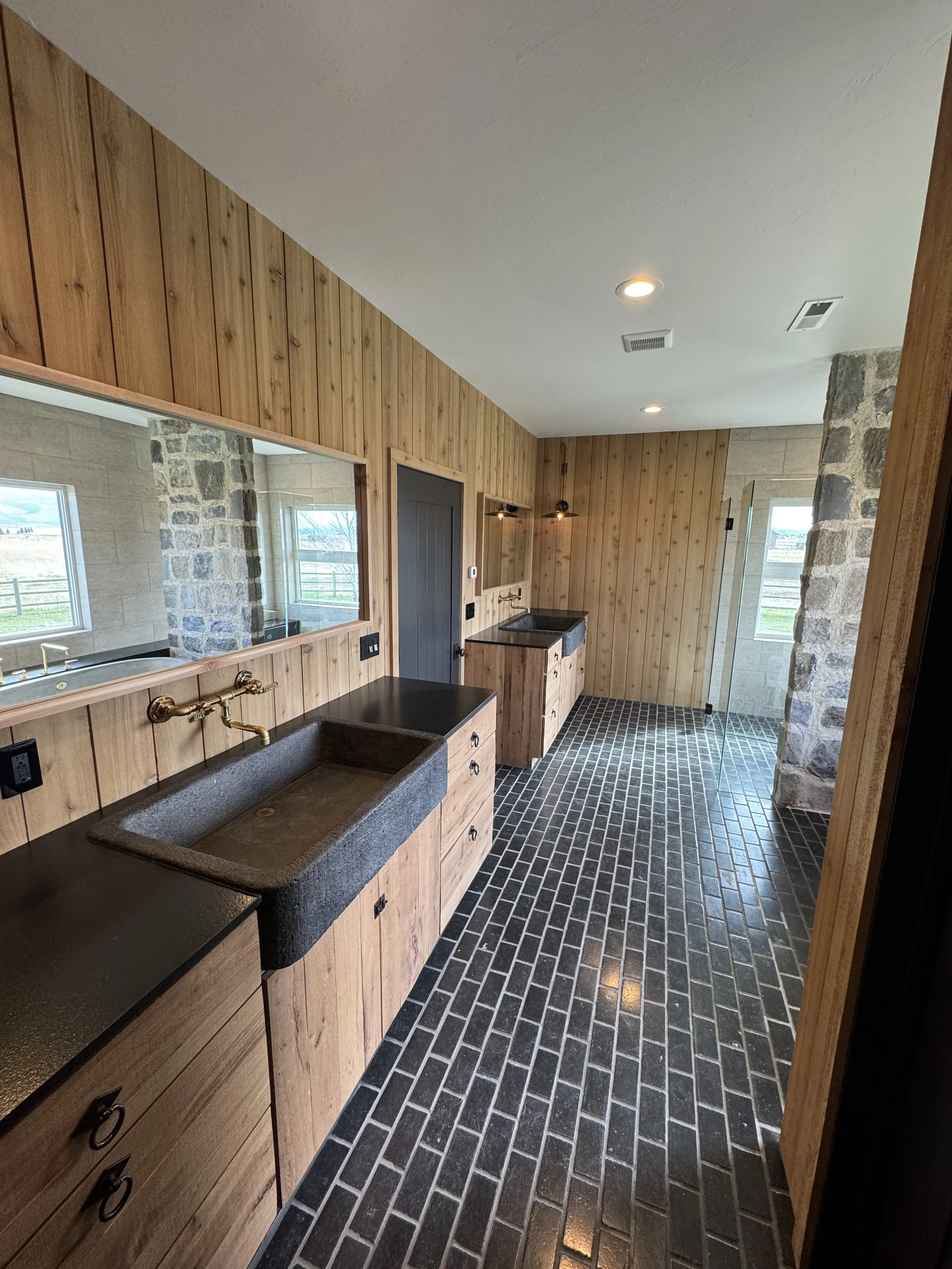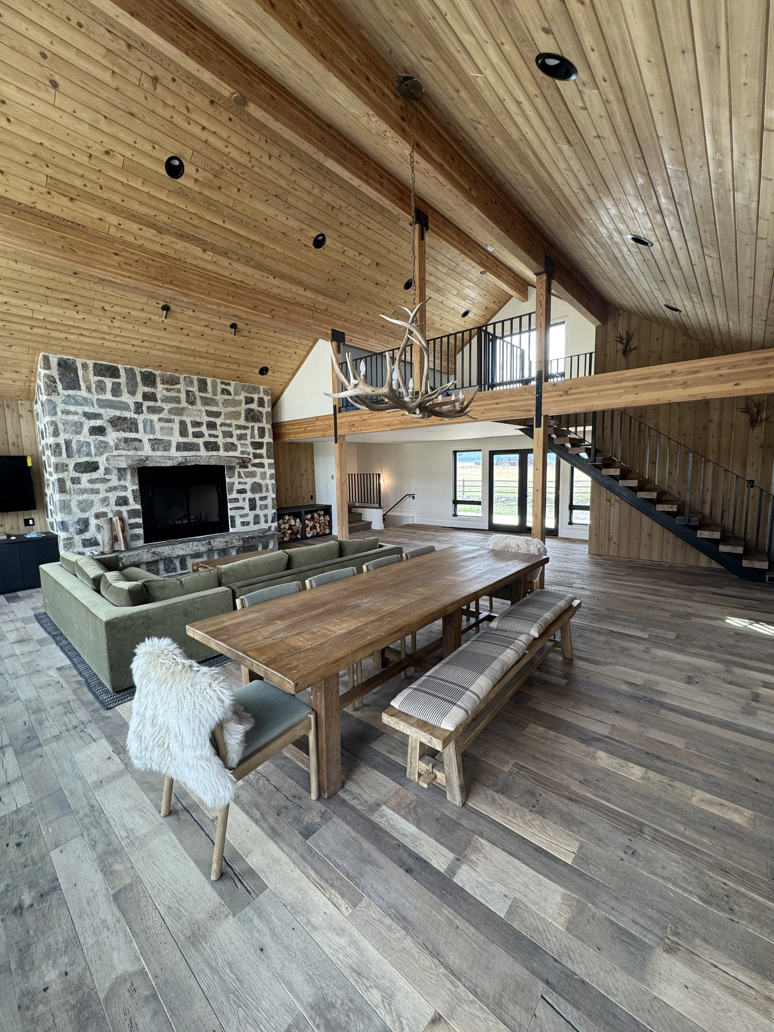 This Elbow Creek remodel in Paradise Valley blends modern cabin style with a bold edge. Warm wood tones, sleek finishes, and a striking fireplace create the perfect balance of comfort and contemporary design — a true Montana retreat with character.